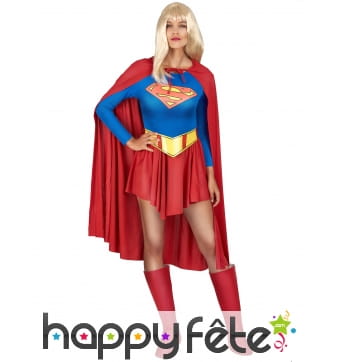 A travers cette page, vous décèlerez une magnifique sélection de costumes de Supergirl. Mais qui est Supergirl au juste ? Ce personnage a été créé suivant le même concept que Superman. On lui a octroyé les mêmes pouvoirs, c'est-à-dire qu'elle est ultra-forte et qu'elle peut aussi voler dans les airs. Son costume est similaire à celui de Superman, mais quelques modifications ont été apportées pour un effet plus féminin. Son apparition à la télévision a ravi le public féminin, fanatique des histoires de super-héros. Une autre femme de plus qui a des pouvoirs surhumains. A cet effet, nous nous faisons un plaisir de vous proposer les costumes idéaux pour incarner ce personnage lors d'une soirée déguisée. Voyez par exemple le resplendissant costume sous licence Supergirl. Il est composé d'une cape, d'une robe et d'une paire de surbottes aux couleurs de l'ensemble de Supergirl, et avec le grand "S" au niveau de la poitrine. Comme accessoire, nous vous suggérons la perruque à effet naturel blond pour que vous entriez totalement dans la peau du personnage. Vivez pleinement votre passion, et surtout faites le bon choix !