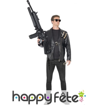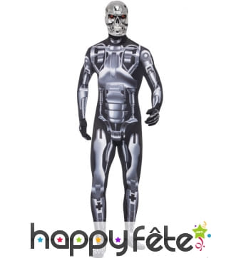 Quand on pense au déguisement de Terminator, on pense instinctivement à l'apparence d'Arnold schwarzenegger. Et il est vrai qu'au delà du scénario, tout le succès du personnage et du film tient certainement en l'adaptation du personnage qu'en a fait Arnold. Mais en dessous de la musculature impressionnante se trouve un squelette cybernétique qu'il peut être intéressant d'incarner dans une tenue près du corps. Nous vous proposons dans cette partie du catalogue happyfete de découvrir les différents déguisements de Terminator mis à votre disposition. Pour les puriste, le terminator humain aux lunettes noir vous est proposé (nous vous conseillons d'y ajouter une lentille rouge afin que l'illusion soit parfaite lorsque vous retirerez vos grandes lunettes de soleil). La tenue Morphsuit (seconde peau) de robot (T-800) vous est aussi proposée. Là encore, n'hésitez pas à la compléter avec les lentilles (c'est l'accessoire qui fait LA différence).