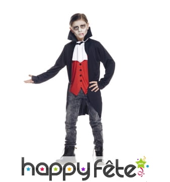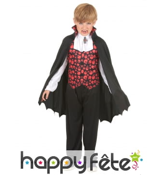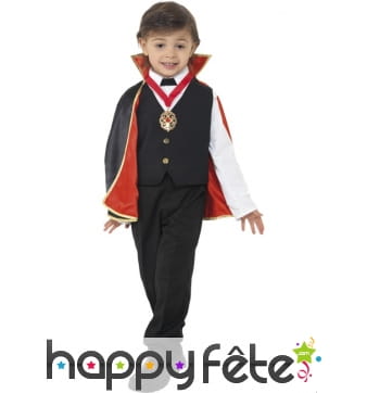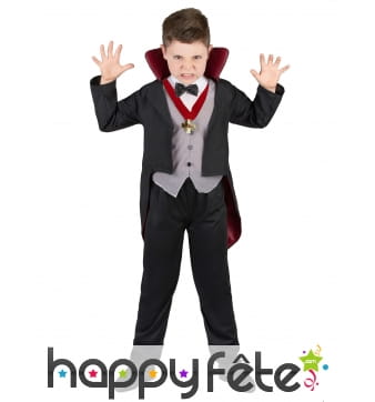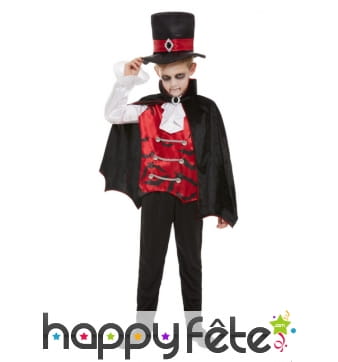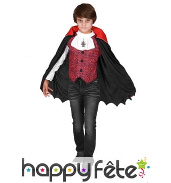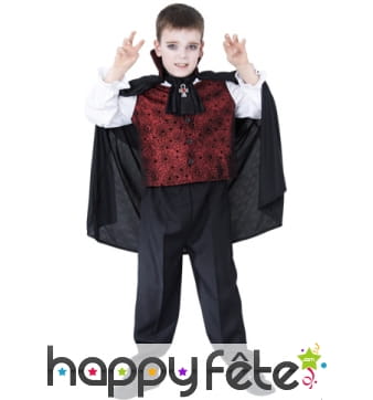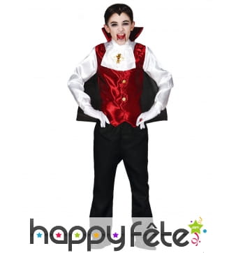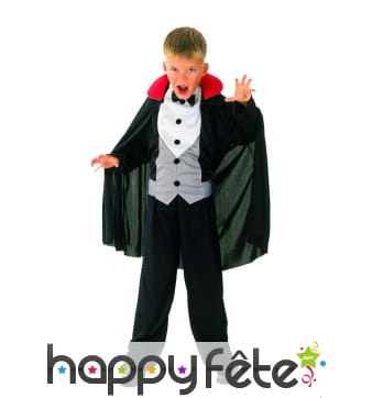 Retrouvez le must des costumes d'Halloween sur Happyfete. Ici, nous ne parlerons que d'un personnage : les vampires. En effet, cette section regroupe tous les déguisements vampire garçon (enfant) que nous avons. Les petits garçons ne sont pas très difficiles, tant que leur costume fait peur, c'est l'essentiel. Mais nous ne sommes pas d'accord, nous vous conseillons quand même ces costumes de qualité, soigneusement élaborés pour respecter le personnage. Et soyez sûr de trouver ici le déguisement du plus célèbre et plus puissant vampire Dracula. Un déguisement Dracula enfant est disponible ici avec une cape noire dont l'intérieur du col montant est rouge, avec un haut rouge et un pantalon noir. Vous pouvez rajouter les crocs de vampire ou d'autres accessoires disponibles sur Happyfete.