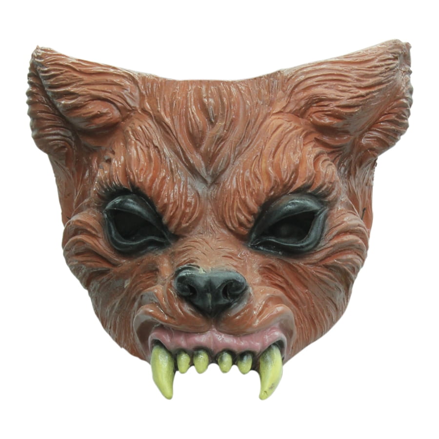 Messieurs, si vous avez décidé de vous transformer en loup garou à l'occasion de la fête des morts, nous vous proposons le demi masque en latex de loup garou. C'est la reprise de la partie supérieure de la face d'un loup garou. Conçu dans du latex et de couleur marron, des crocs jaunâtres lui sortent de la gueule. Il ne vous reste plus qu'à vous exercer au hurlement !