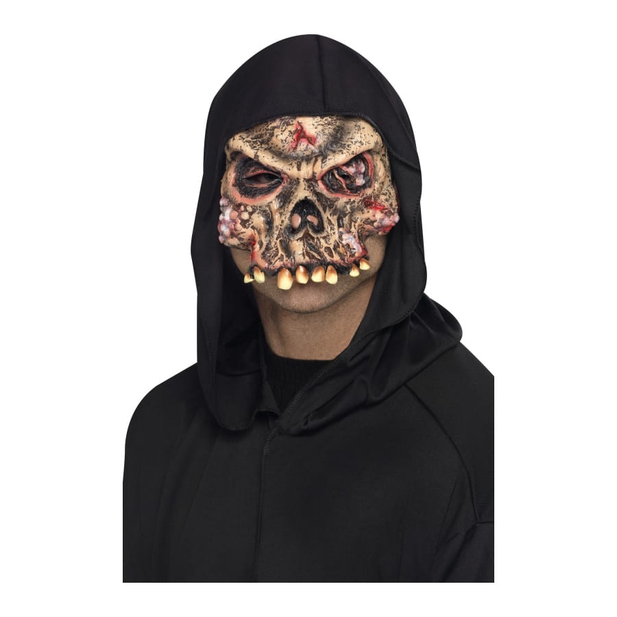 Masque de zombie squelette, pour homme. Le masque recouvre uniquement la moitié du visage, montrant les dents jaunes. Le visage est entièrement pourri, donnant une peur bleue à quiconque croisera votre chemin!