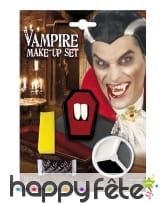 Et quoi de plus facile avec ce set de dents, faux sang et maquillage de vampire.