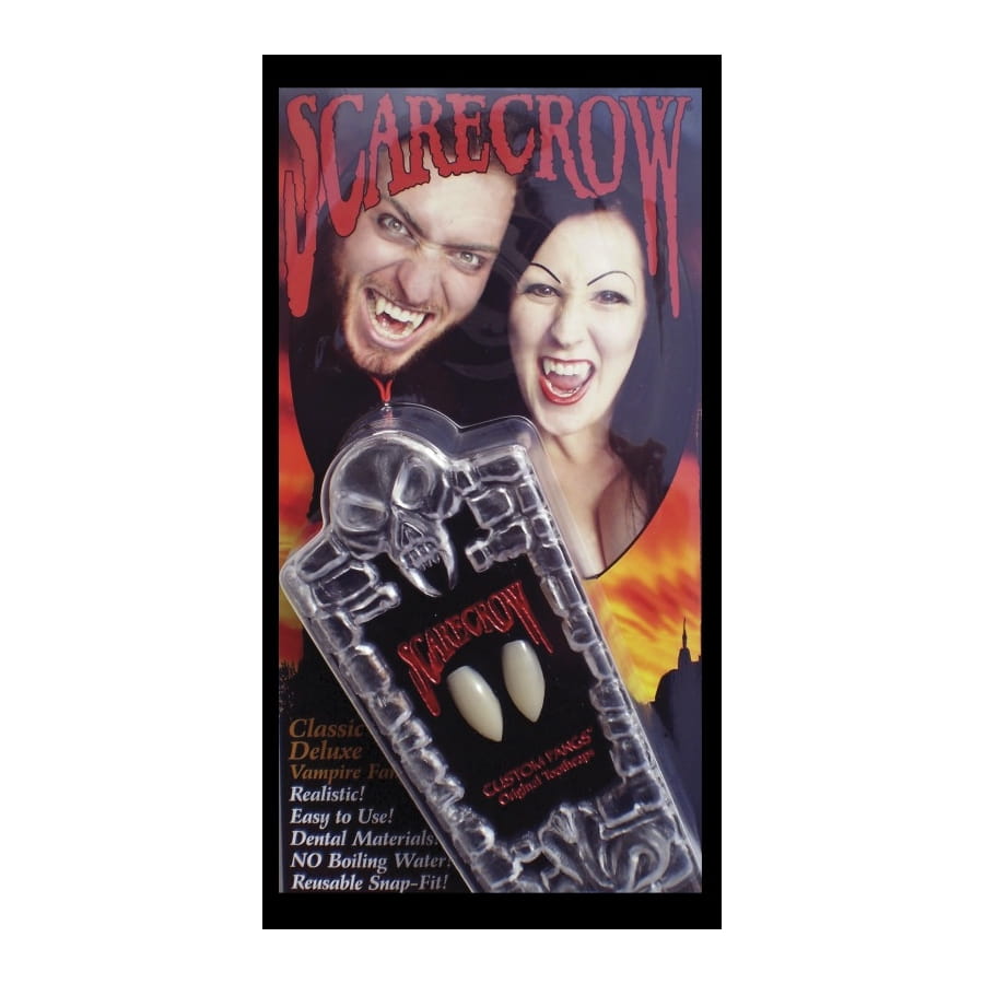 Dents de vampire de couleur blanche, pour homme ou femme. Ces dents sont très réalistes, vous permettant de les porter pour une soirée déguisée et de vous faire passer pour un méchant vampire.