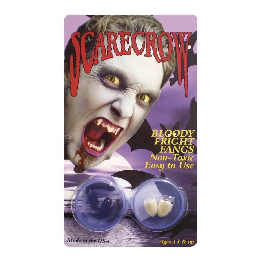 Dentes de vampire de couleur blanche, livrée avec fayx sang et adhésif, pour homme, femme, adolescent ou adolescente. Ce kit est complet et vous transformera instantanément en assoiffé de sang!