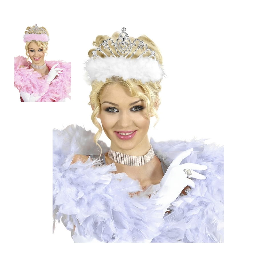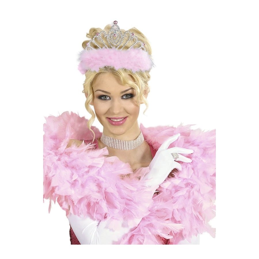 Cette tiare est décorée de plumettes synthétiques roses ou blanches selon votre choix.