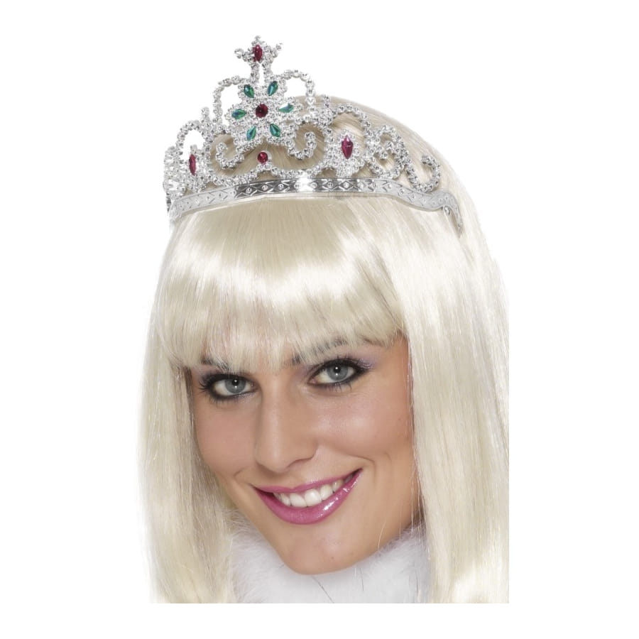 Ce diadème vous pourrez le porter pour incarner une reine ou encore pour partir a une fête ayant pour thème conte de fée. Ce diadème est argenté avec une fleur au centre avec des pierres bleu dessus ainsi que des pierres rouges sur le diadème.