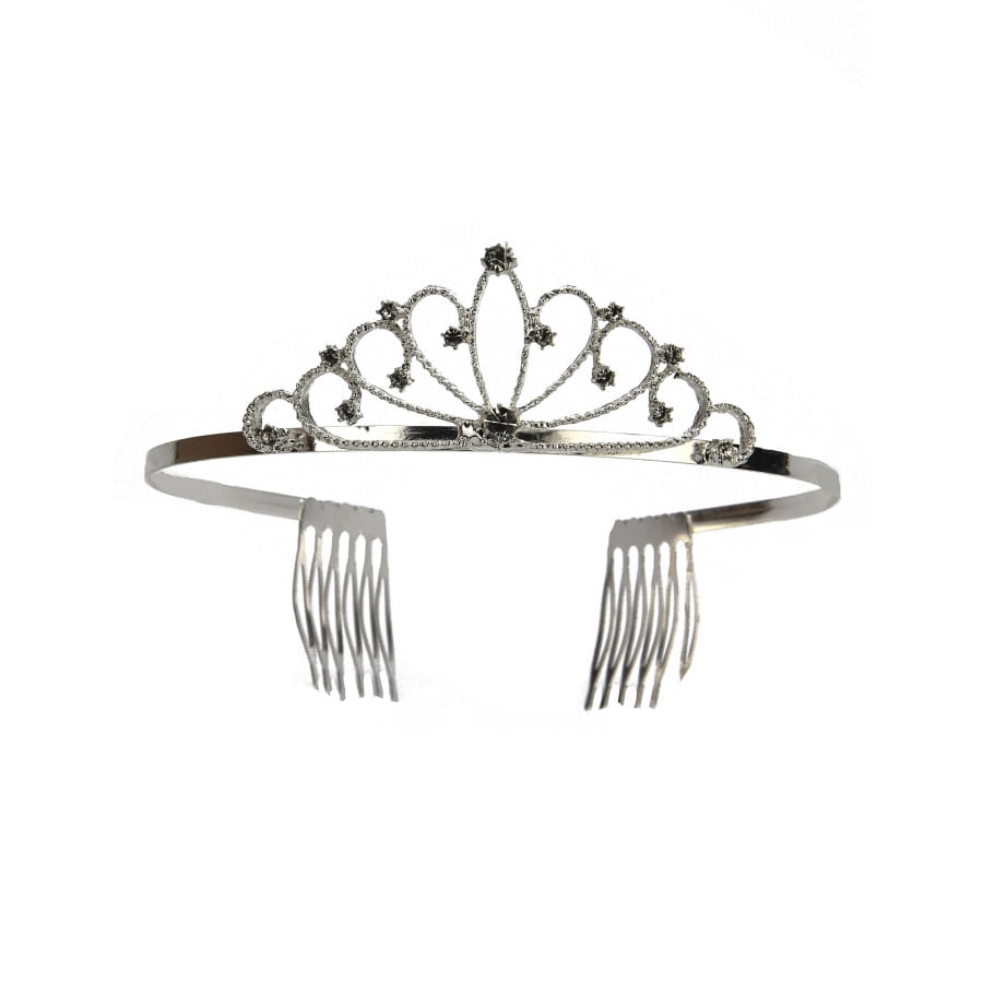 Cette couronne en métal possède des strass argentés à l'avant et quelques étoiles sont présentes pour agrémenter le tout.