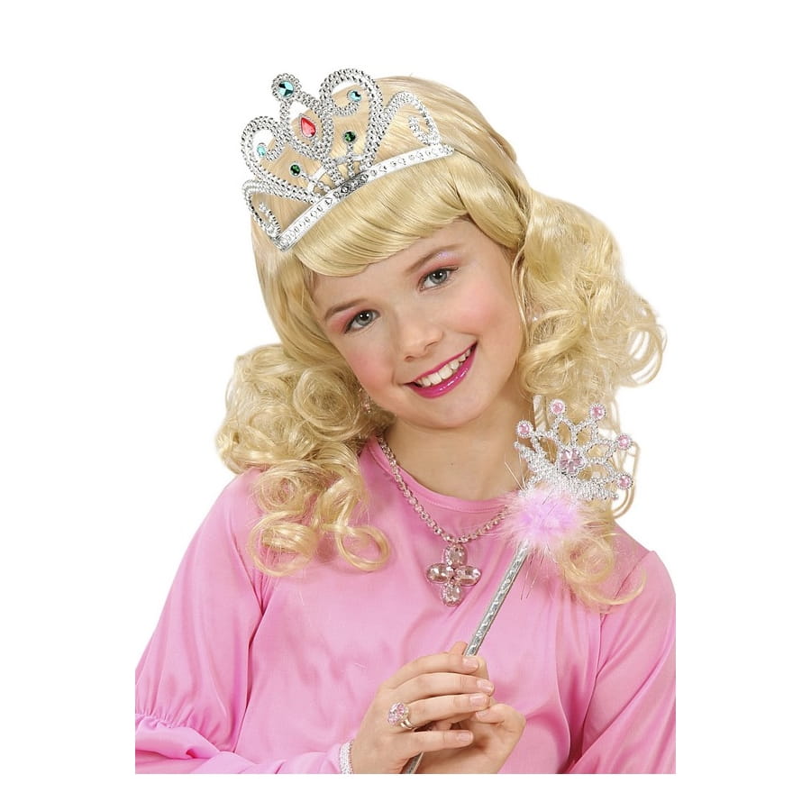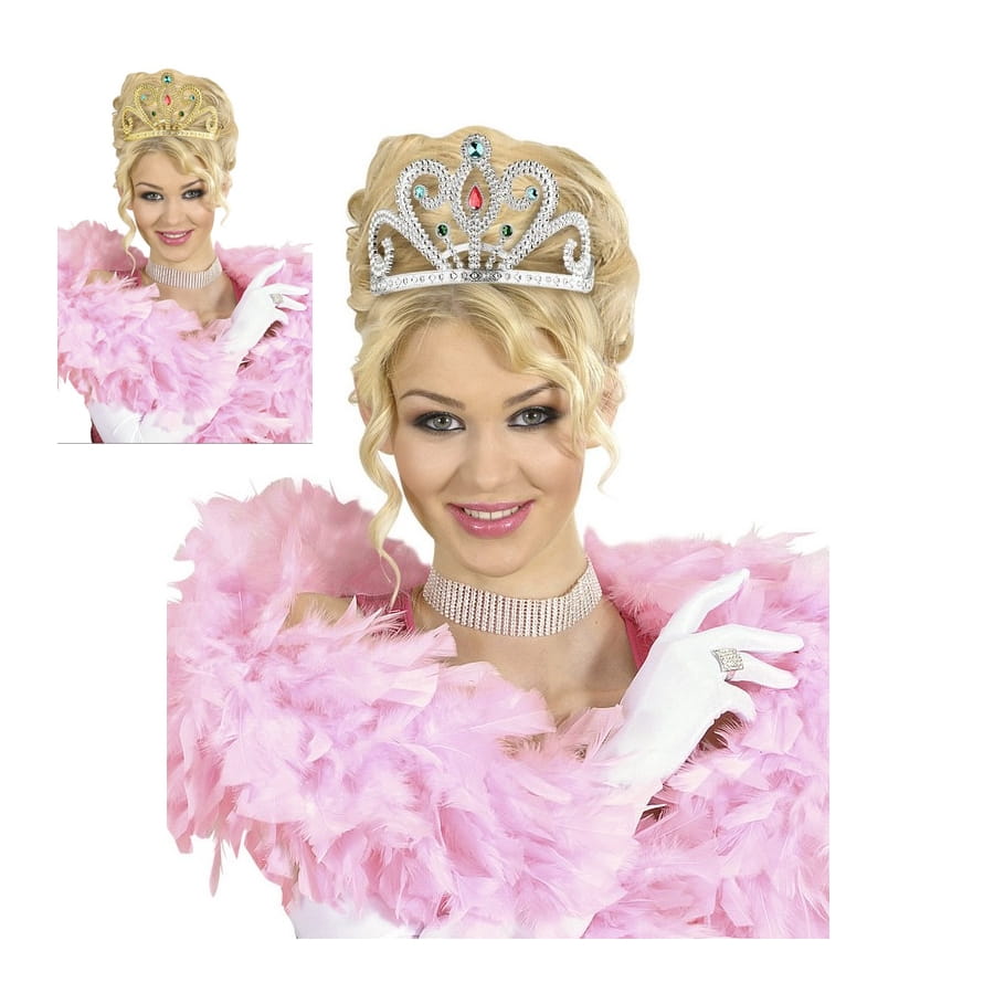 Il s'agit d'une tiare ornée de fausses pierres précieuses multicolores incrustées en relief.