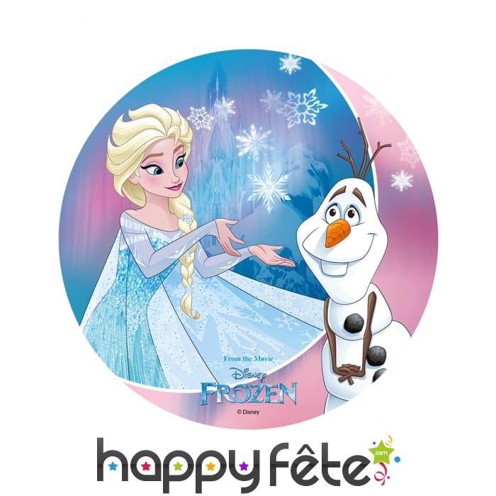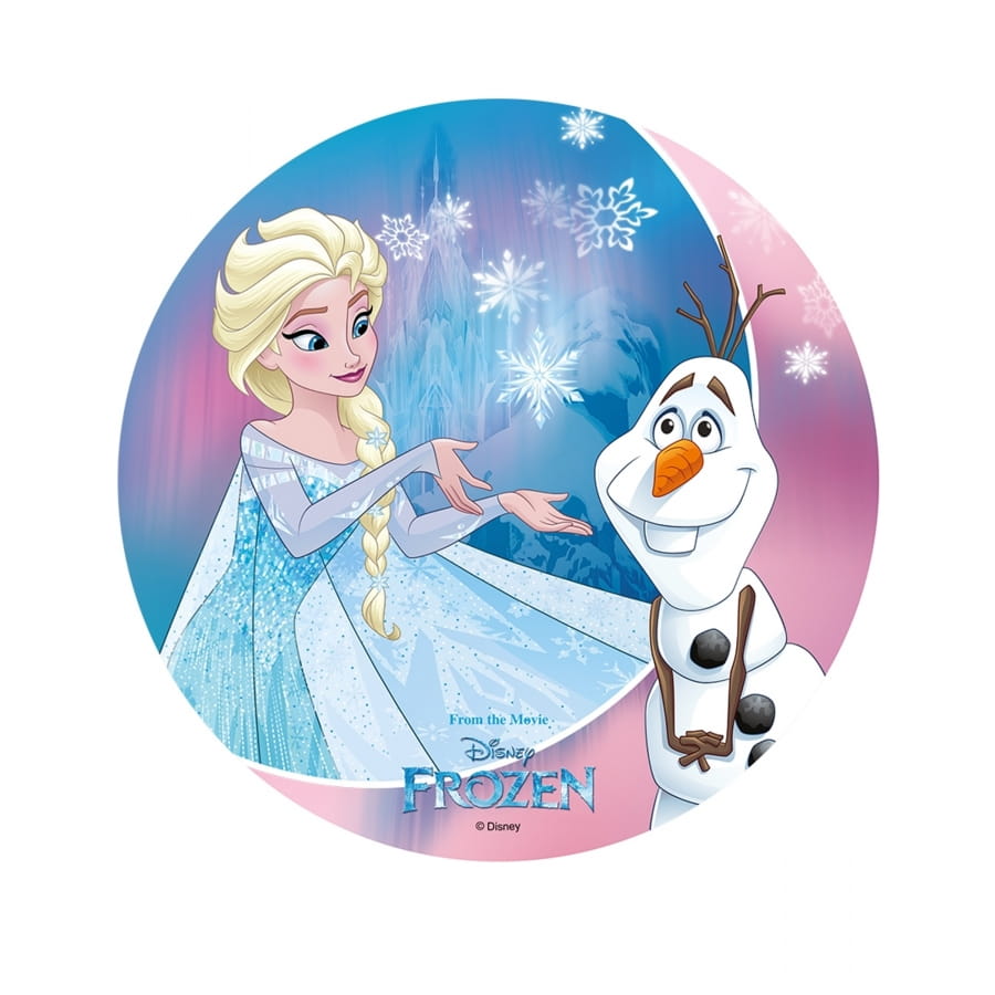 Le disque azyme Elsa et Olaf de 20 cm est une décoration comestible pour gâteau.