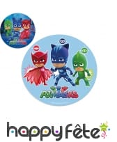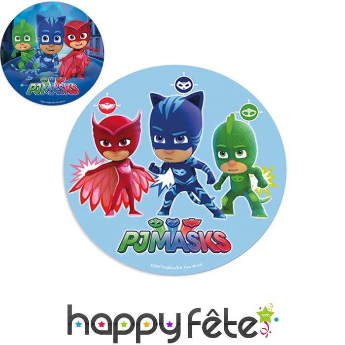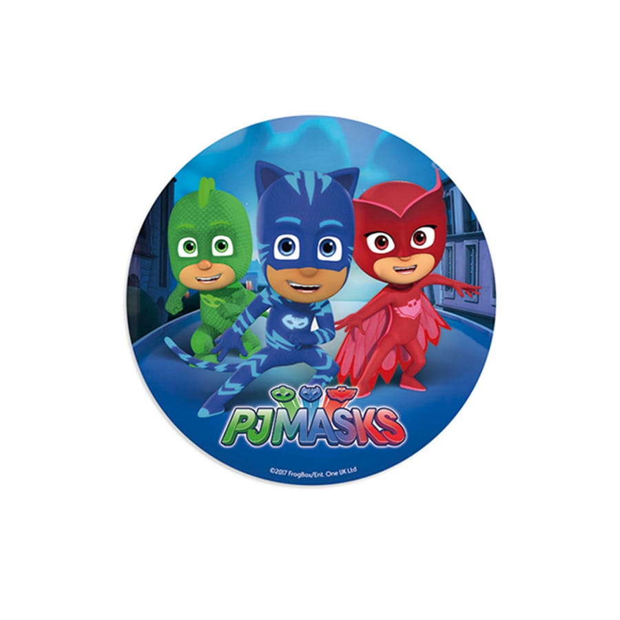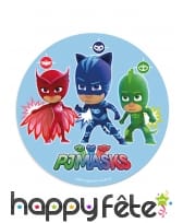 Ce Disque azyme pour gâteau Pj Masks 20cm sera parfait pour rehausser la décoration de vos desserts d'anniversaire.