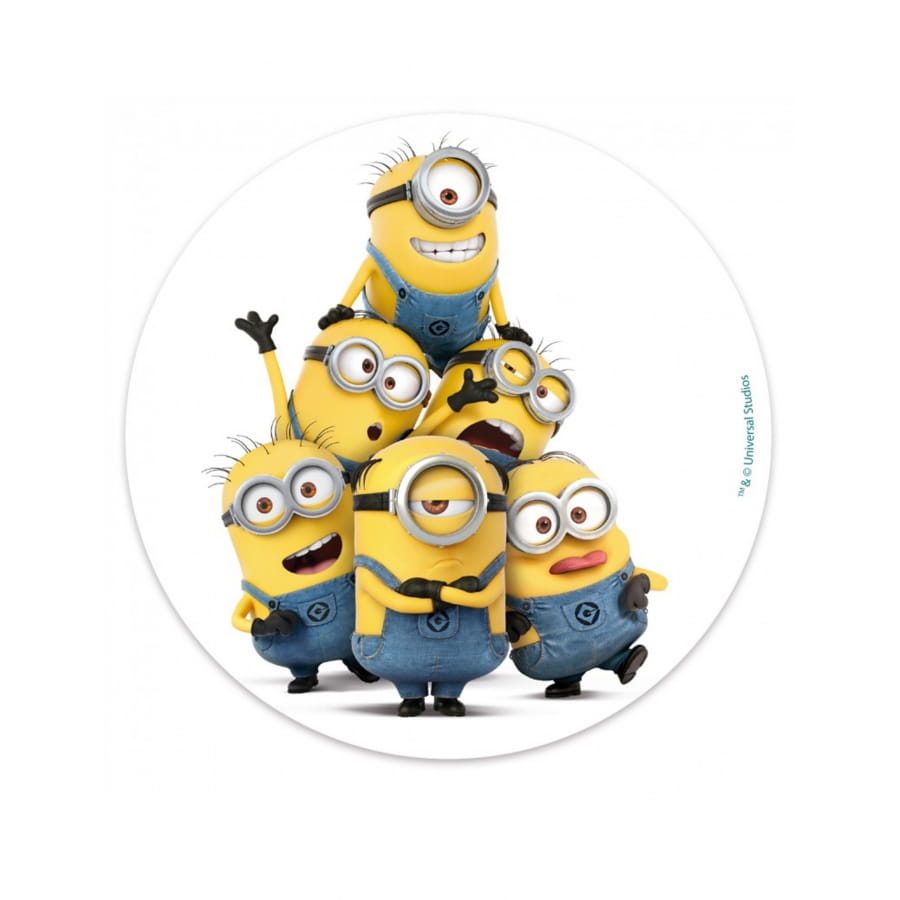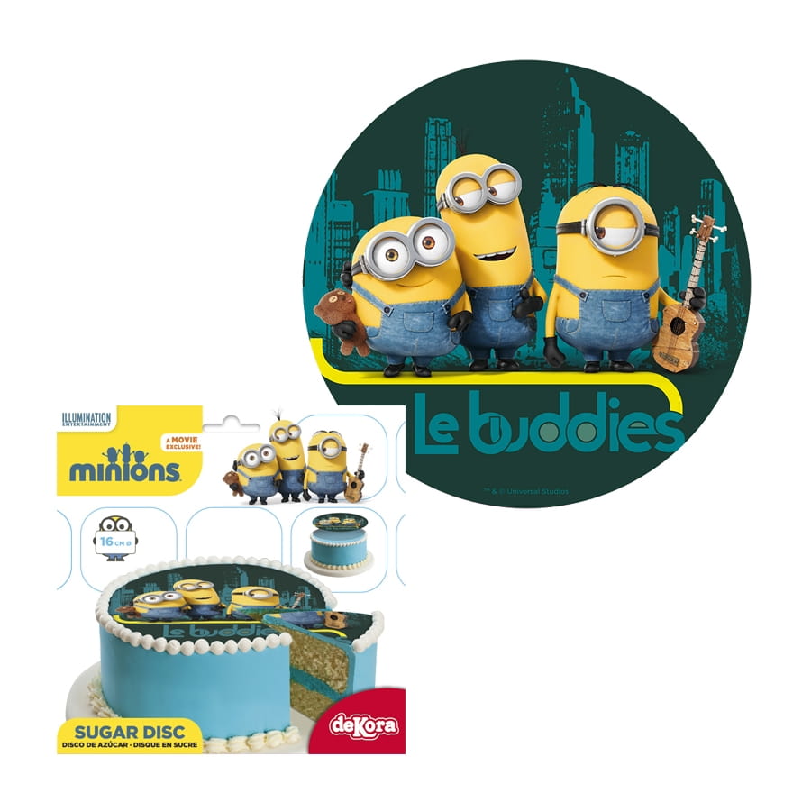 Vous allez élaborer un drôle de gâteau grâce aux minions ! Ces petits personnages sont en vedette dans l'article disque en sucre Minions, 16cm. Optez pour ce modèle sous licence Disney. Il pèse 15 g, mesure 16 cm et met en évidence la couleur jaune. Vous allez pouvoir réaliser une pâtisserie gourmande et originale, ornée d'un superbe disque en sucre sans gluten.