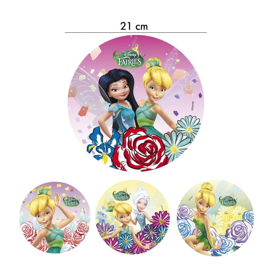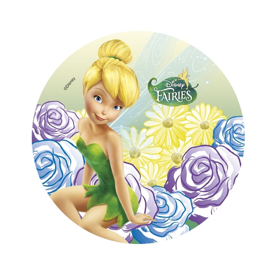 Le disque Fée Clochette et ses amis en azyme de 21 cm est une décoration idéale pour un gâteau d'anniversaire.