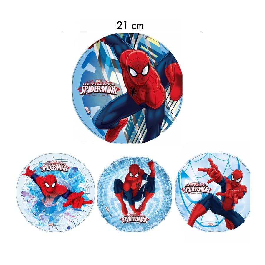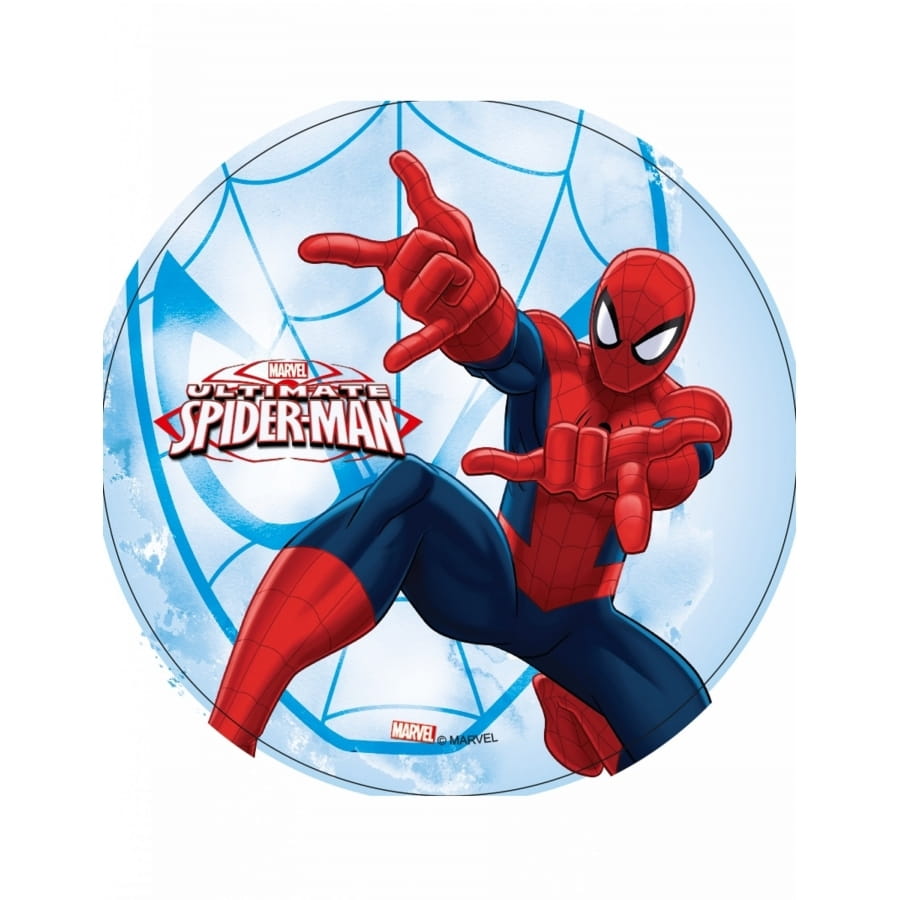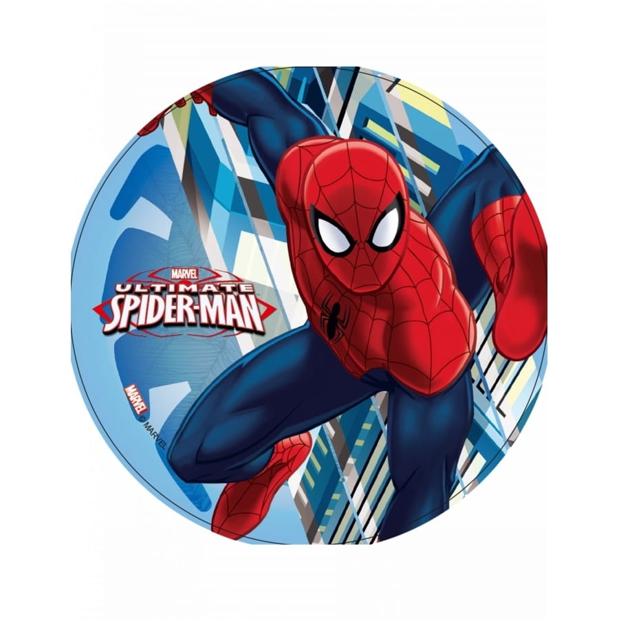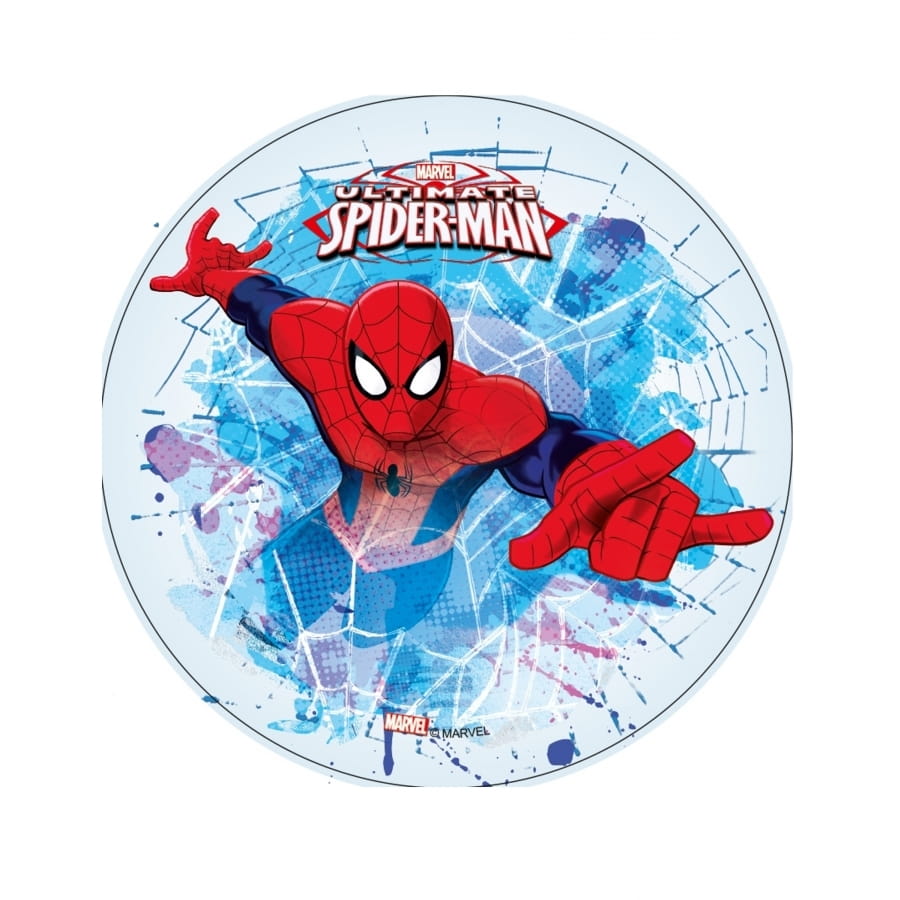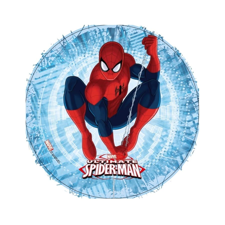 Le disque Ultimate Spiderman de 21 cm en azyme est disponible en 4 modèles différents dans notre boutique. Sur son fond bleu, il représente le Super héros en action. Il est également imprimé de l'inscription "ultimate Spiderman" écrite en lettres majuscules blanches bordée de rouge. Pour la fixer sur la pâtisserie, il est conseillé de le couvrir au préalable d'une couche à base de sucre.