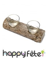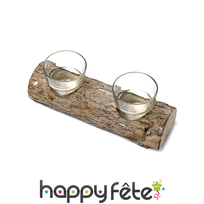 Marquez de votre emprunte une déco sur le thème de la nature, avec le double bougeoir en forme de rondin de bois, 21 cm.