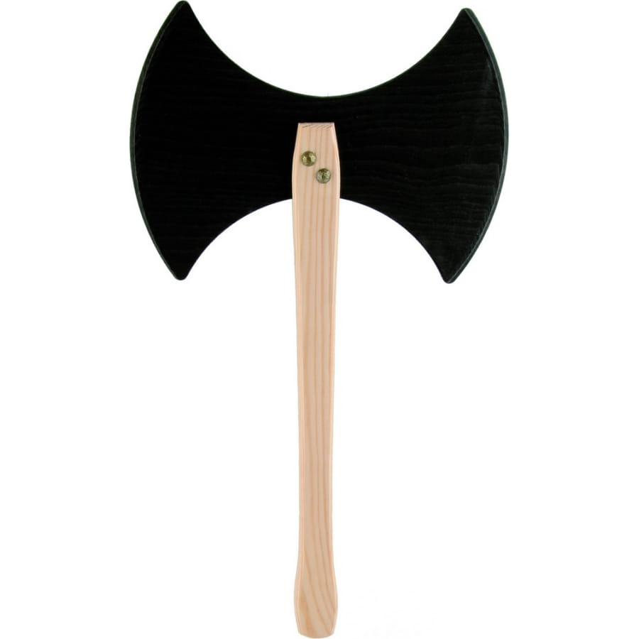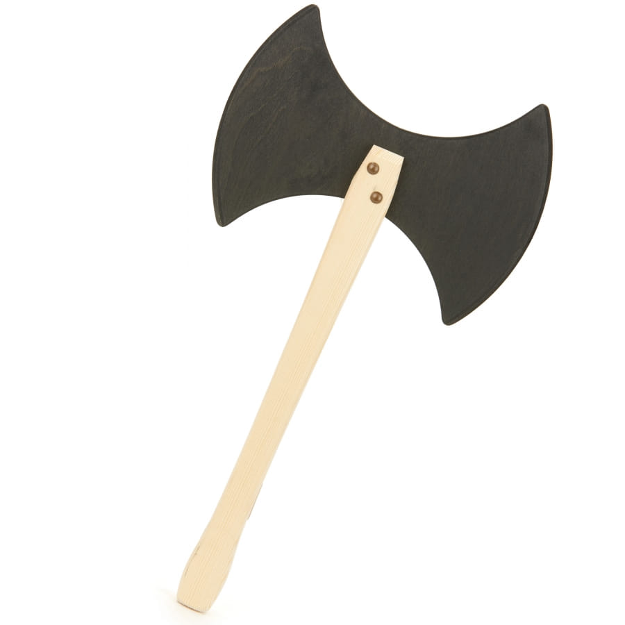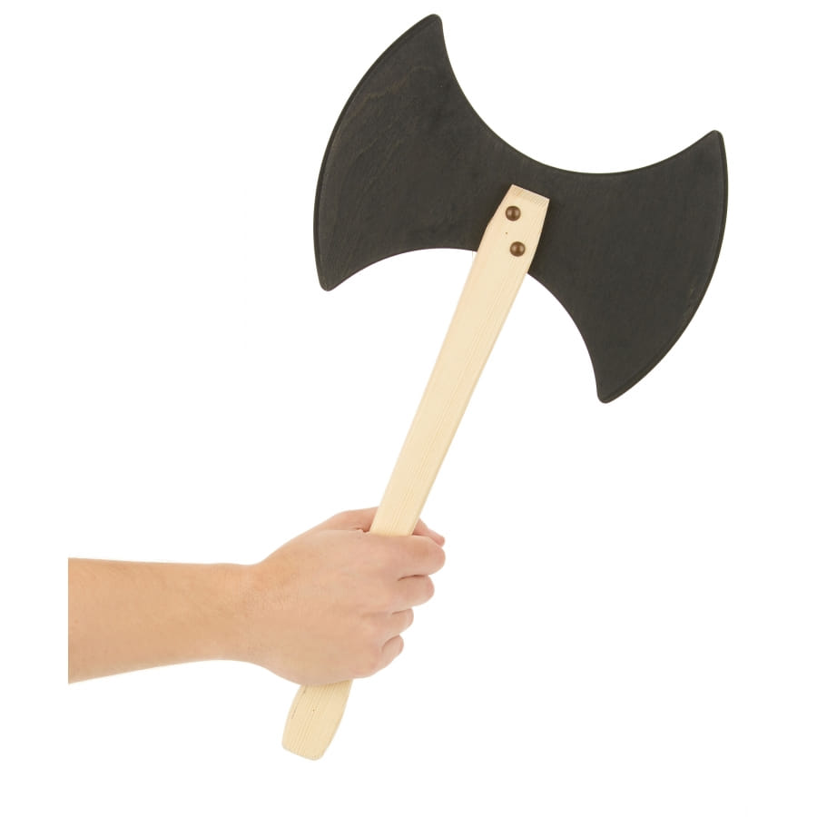 Notre double Hache artisanale en bois, 45 cm fera de vous le viking le plus admiré d'une soirée placée sous le thème du moyen-âge.