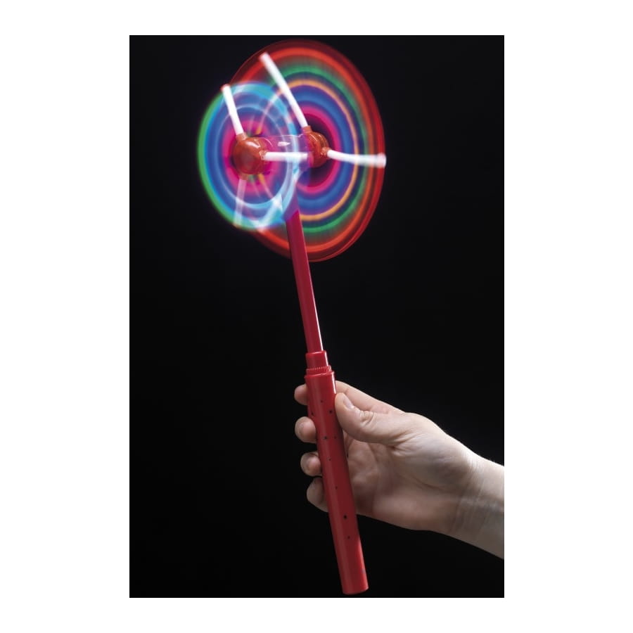 Tourne, tourne joli moulin ! Les petits vont apprécier ce jouet formidable ! Procurez-vous en d'ores et déjà pour vos futurs lots de kermesse ! Il s'agit d'un double moulin à vent multicolore. Il est doté de deux hélices qui tournent, tout en couleur. Mais en plus, cet accessoire s'illumine ! Le résultat est magique quand vous l'activez dans le noir : à la fois fascinant et captivant !
