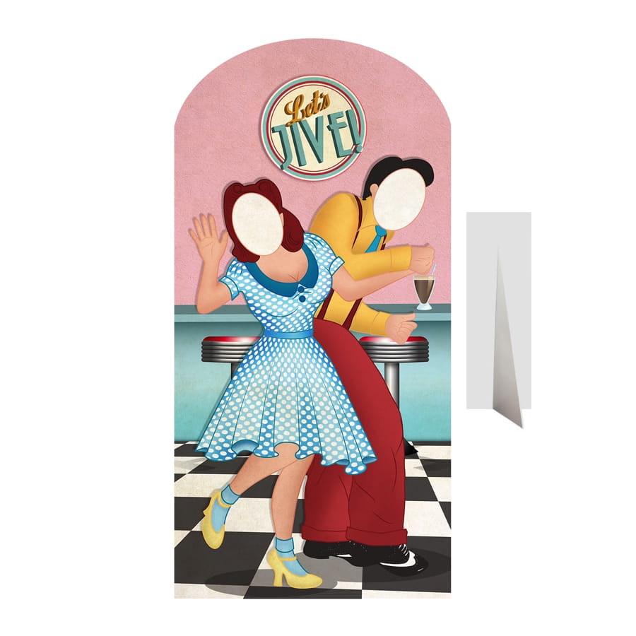 Si vous cherchez un accessoire de décoration hors du commun pour une fête ou une soirée sur le thème des années 50 ou 60, nous avons l'article qu'il vous faut. Découvrez ce Double passe tête couple années 50 qui danse, un dessin multicolore en carton d'une dimension de 192 x 94 cm.