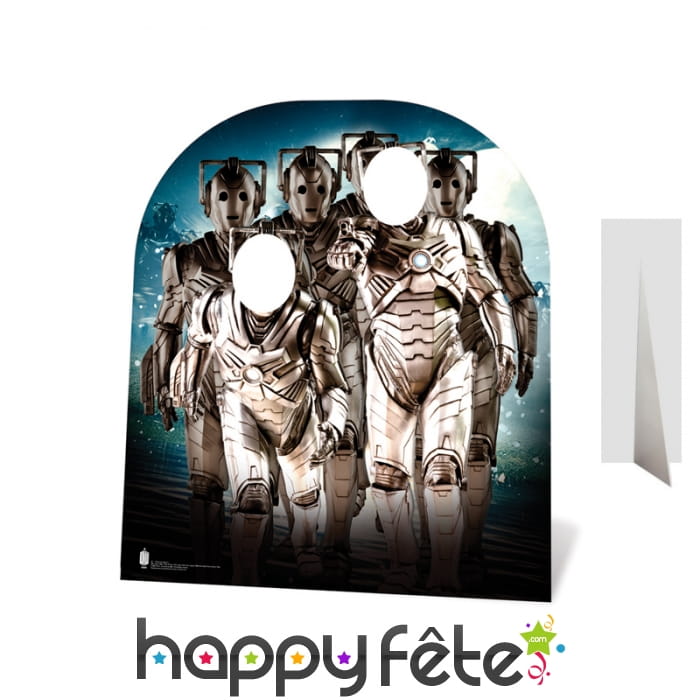 Ce double passe-têtes cyberman, Doctor who que nous vous proposons ici a une dimension de 115 x 101 cm (taille enfant). Ce magnifique article de décoration représente des cybermen ou des robots cyborgs. Deux découpes y sont présentes pour passer la tête et prendre des photos. C'est un superbe article pour l'anniversaire d'un petit garçon passionné du monde de la Science-fiction ou pour une petite soirée à thème «Futuriste» entre amis ?