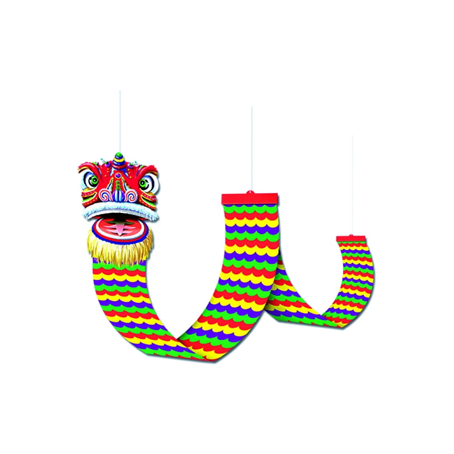 Pour le nouvel an chinois, ou tout autre fête ayant pour thème l'Asie, ce magnifique dragon en carton sera la bonne décoration. Ce dragon à suspendre changera la décoration de votre fête. Multicolore avec trois fils pour le soutenir , il fait 3m de long sur une hauteur de 30cm.