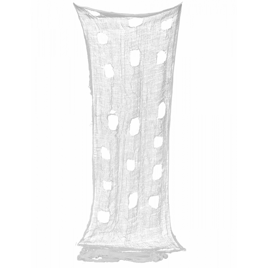 Le produit représente un long drap blanc présentant plusieurs trous, qui lui donnera l'impression d'être usé.