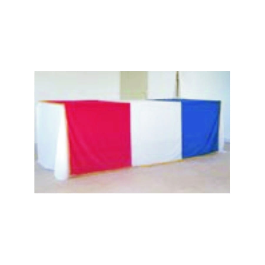 Nous avons ici ce drap mortuaire que vous pourrez utiliser pour un événement solennel. Il est de couleur blanche, bleue et rouge, sans frange, et a une longueur de 300 cm pour une largeur de 200 cm. Vous pourriez vous en servir pour supporter votre équipe nationale, en guise de décoration ou pour une commémoration militaire.