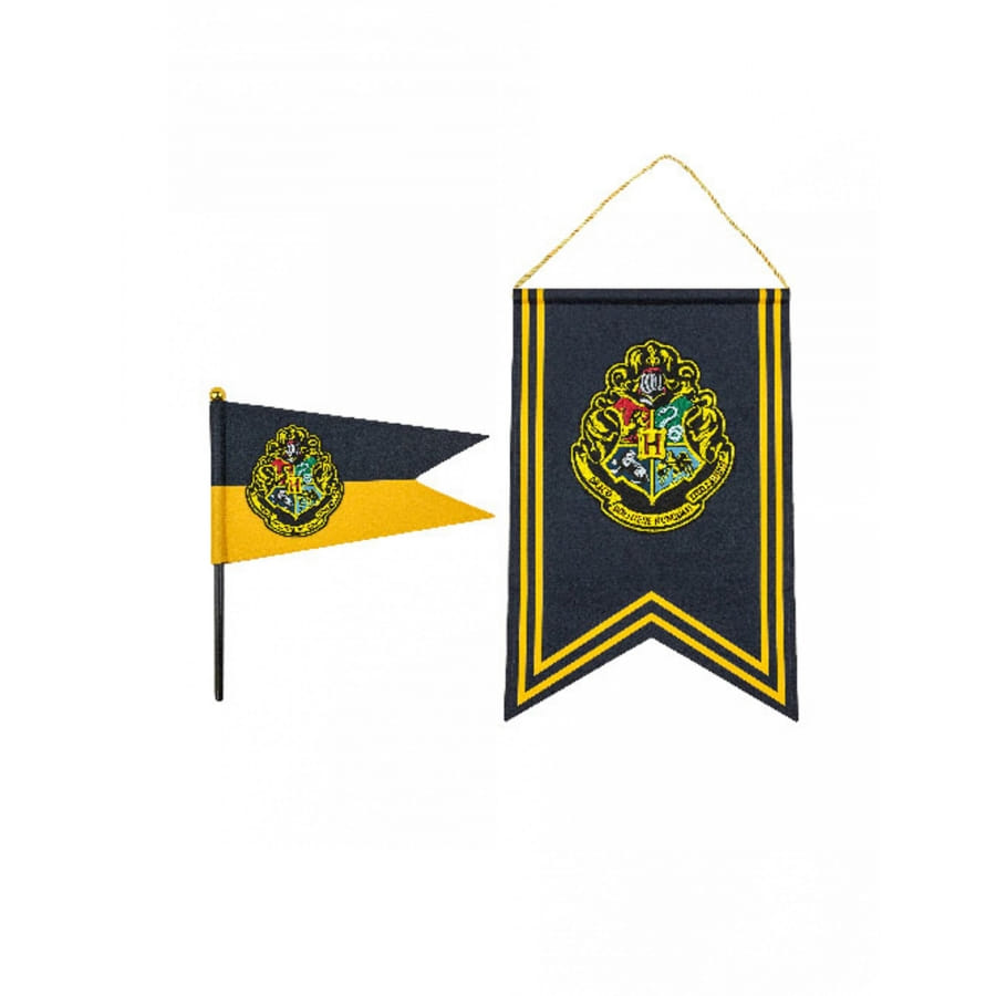 Le drapeau et la bannière de la maison Poudlard sont de couleurs noir et jaune.