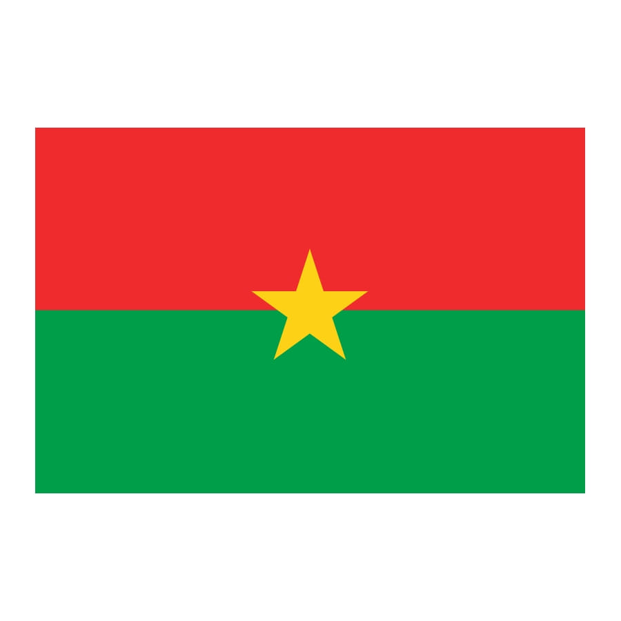 Le drapeau du Burkina Faso est composé de deux bandes horizontales : rouge en dessus et verte en dessous. Au centre se trouve une étoile jaune à cinq branches. Choisissez ce mini-drapeau à titre d'élément décoratif. Il va s'ajouter à votre collection d'objets du monde. Il a 50 cm de long sur 40 cm de large avec un ourlet sur 3 côtés. Il résiste au soleil et a été fabriqué en maille polyester perméable. Son montage de sangle et d'anneau permet de le hisser sur un mât. Dans ce drapeau, la couleur rouge symbolise la couleur de la révolution socialiste, le vert la richesse agricole, et le jaune représente la lumière.