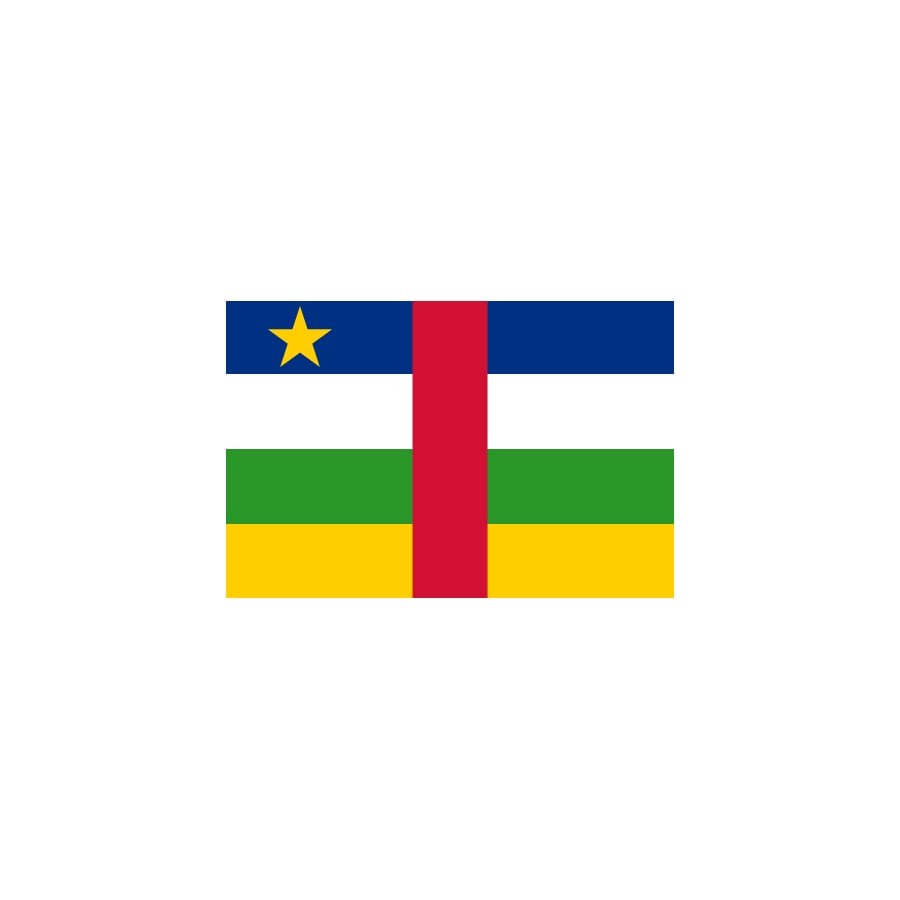 Le drapeau centrafricain est très original, de couleur bleue, blanche, verte, jaune en quatre bandes horizontales, séparé d'une bande verticale rouge au milieu, et muni d'une étoile jaune en haut à gauche. Il vous est proposé en dimension 50 x 75 cm, en maille polyester avec un ourlet sur les 3 côtés. Anti-UV et perméable, il est composé d'une sangle et d'un anneau pour un hissage sur mât. Ce drapeau est également disponible pour : Chine/ Colombie/ Côte d'ivoire/ Cuba/ Danemark/ Égypte/ Espagne /Espagne écu/ Estonie/ États-Unis/ Europe/ Finlande/ France/ Grèce/ Hollande/ Hongrie/ Inde/ Irlande/ Italie/ Japon/ Luxembourg/ Maroc/ Mexique/ Paix/ Picardie/ Portugal/ Portugal écu/ Probandes/ Prolys/ Royaume-Uni/ Russie/ Savoie/ Serbie/ Slovaquie/ Suède/ Suisse/ Tchad/ Tchéquie.