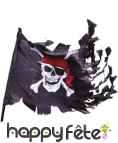Il a toutes les caractéristiques qu'on attend d'un drapeau de pirate digne de ce nom. Avec son fond noir mystérieux et son imposant crâne blanc au centre, croisé par deux os, il a vraiment l'air d'avoir survécu à de nombreuses batailles en mer.