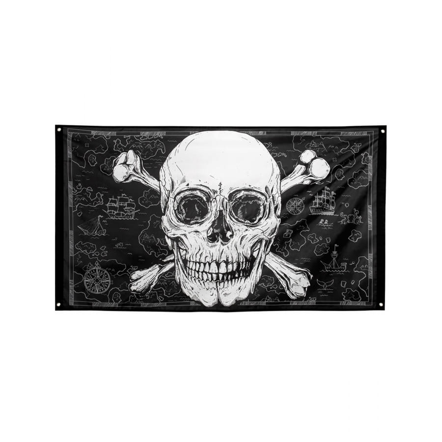 Mais le véritable trésor de ce drapeau, c'est le dessin de la carte au trésor qui se superpose en arrière-plan. Ces détails gris subtils ajoutent une dimension supplémentaire à l'ensemble, faisant de ce drapeau plus qu'un simple accessoire : c'est une véritable pièce de décoration.