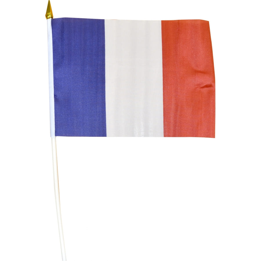 Drapeau en polyester sur hampe de couleur blanche, bleue et rouge aux couleurs de la France. Cet accessoire mesure 21 centimètres de hauteur sur 14 centimètres de largeur. Ce petit drapeau est parfait à l'occasion des élections nationales.