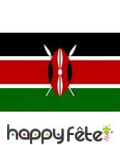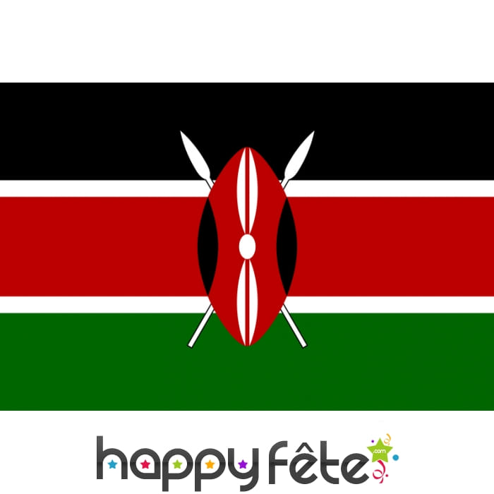 Pour la fête nationale du Kenya, nous avons pensé à tout ! Nous vous proposons ce drapeau en maille polyester perméable de 150 cm de long et de 100 cm de large, traité à l'anti-UV. Il est très résistant et est constitué par un ourlet sur 3 côtés. Son montage de sangle et d'anneau permet de le hisser sur un mât. Il est de couleur noire qui représente le peuple kényan, rouge qui symbolise le sang coulé, vert pour la richesse naturelle du pays. Les bandes blanches ont été rajoutées à l'indépendance pour symboliser la paix. Le bouclier et les deux lances traditionnelles Masaï symbolisent la défense de ces symboles et de la liberté. Alors hissez votre drapeau, et soyez fier de vos origines.