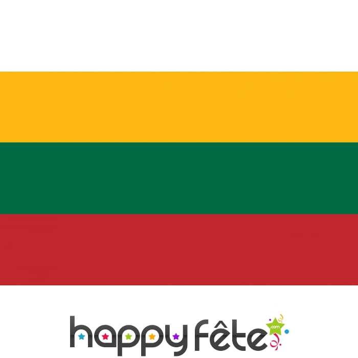 Si vous aussi, vous avez envie de faire la fête à chaque 16 février, la fête nationale de la Lituanie, vous aurez besoin de ce drapeau lituanien. Avec ses trois bandes horizontales de couleur jaune, verte et rouge, ce drapeau est disponible en 40 cm de large et 50 cm de long. Il est en maille polyester perméable et anti-UV. Il est très résistant car a été ourlé sur 3 côtés. Et vous aurez une sangle et un anneau avec le drapeau si vous souhaitez le hisser.