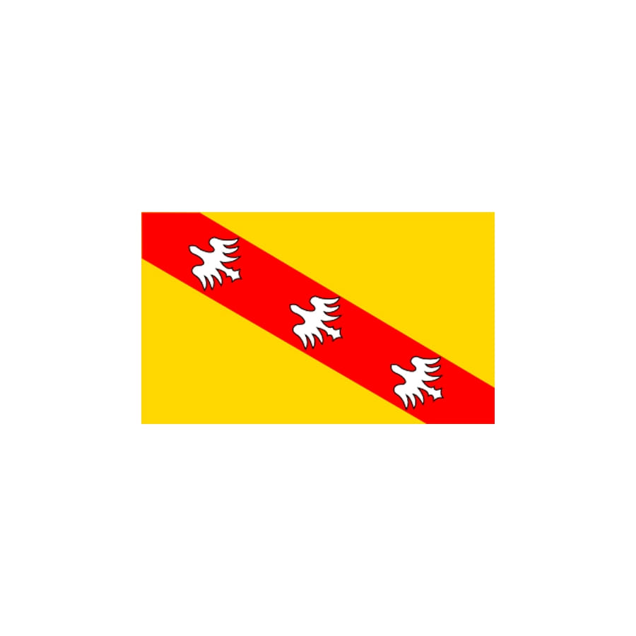 Le drapeau de la Lorraine est « d'or, à la bande de gueules, chargée de trois alérions d'argent ». Celui que nous vous proposons est de couleur blanche, rouge et jaune. Il mesure 120 cm de long sur 80 cm de large. Il est de haute qualité car il est en maille perméable, avec un ourlet sur 3 côtés. Il résiste au soleil, et peut être hissé facilement sur un mât.