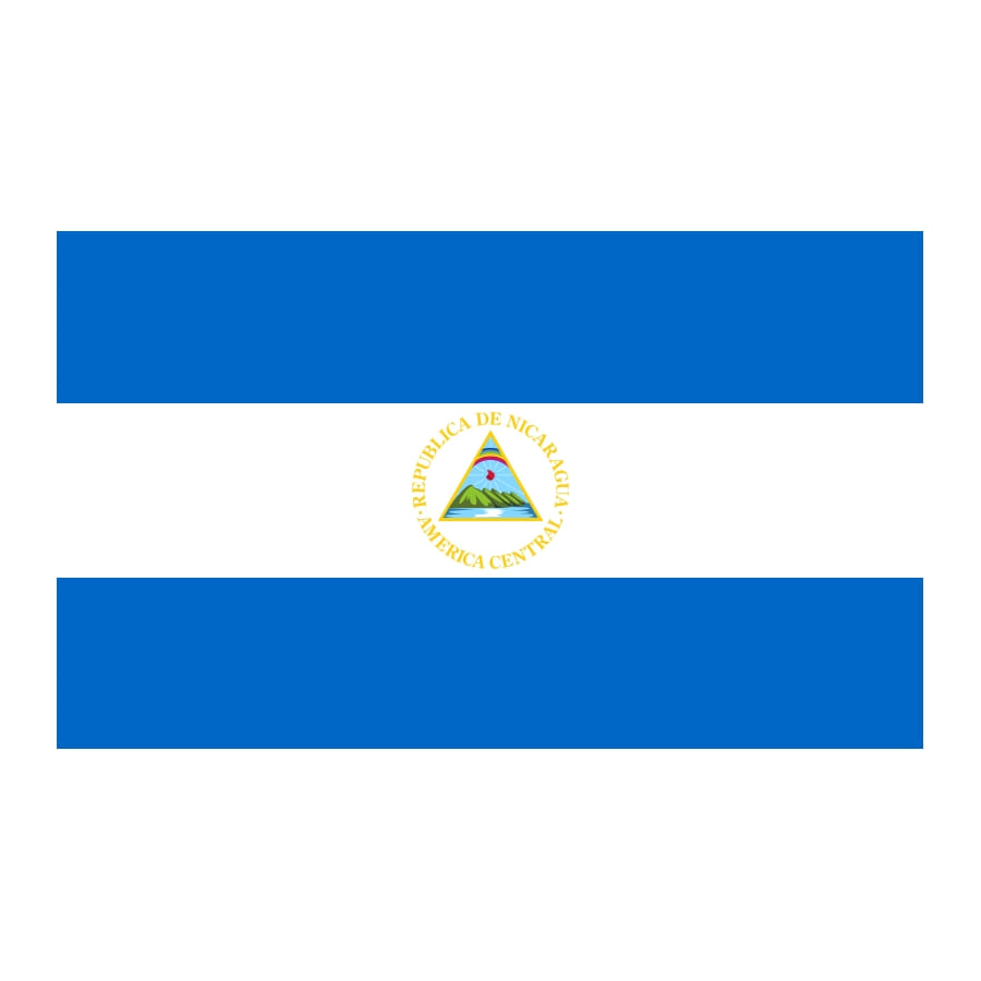 Le Nicaragua est célèbre pour ses sites regorgeant de volcans et de lacs. Si vous envisagez de partir vers cette destination de rêve, imprégnez vous d'abord de sa culture. Vous pouvez commencer par vous procurer un mini-drapeau de 40 cm x 50 cm de dimension, avec un ourlet sur 3 côtés. Il est fabriqué en maille polyester très résistant et perméable, et a été traité à l'anti-UV. Il peut être facilement hissé sur un mât car il est pourvu de sangles et d'anneaux. Il est formé de trois bandes horizontales avec du blanc est entouré de bleu. Au centre se trouve un petit triangle.