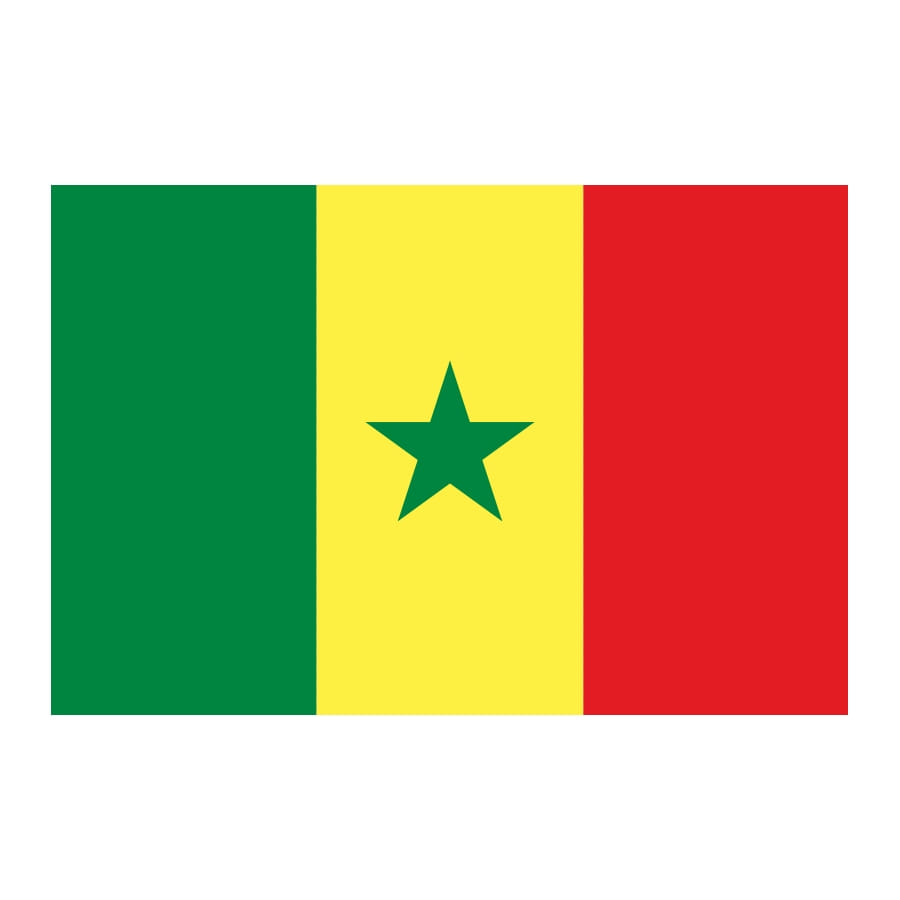 Le Sénégal est un pays très accueillant. Son drapeau est composé de trois bandes : verte, jaune et rouge, verticales et égales. Une étoile verte à cinq branches se trouve au centre. Celui-ci mesure 40 cm de large sur 50 cm de long, avec un ourlet sur 3 côtés. Il est fabriqué en maille polyester très résistant et perméable, et a été traité à l'anti-UV. Son montage de sangle et d'anneau permet de le hisser facilement sur un mât.