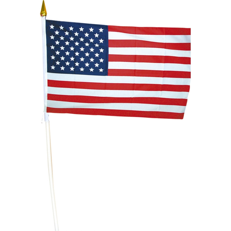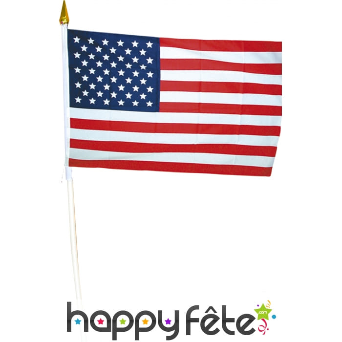 Drapeau bleu, blanc et rouge aux couleurs de l'Amérique en polyester sur hampe. Ce drapeau mesure 14 centimètres de hauteur sur 21 centimètres de largeur. Il est parfait pour les élections américaines.