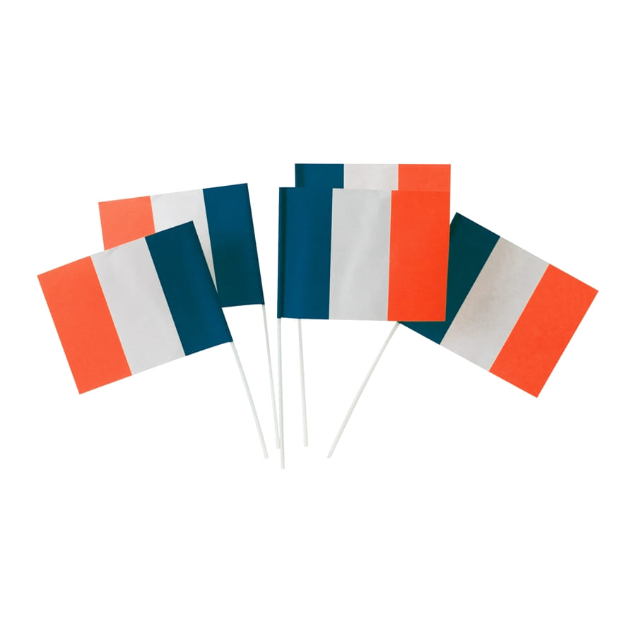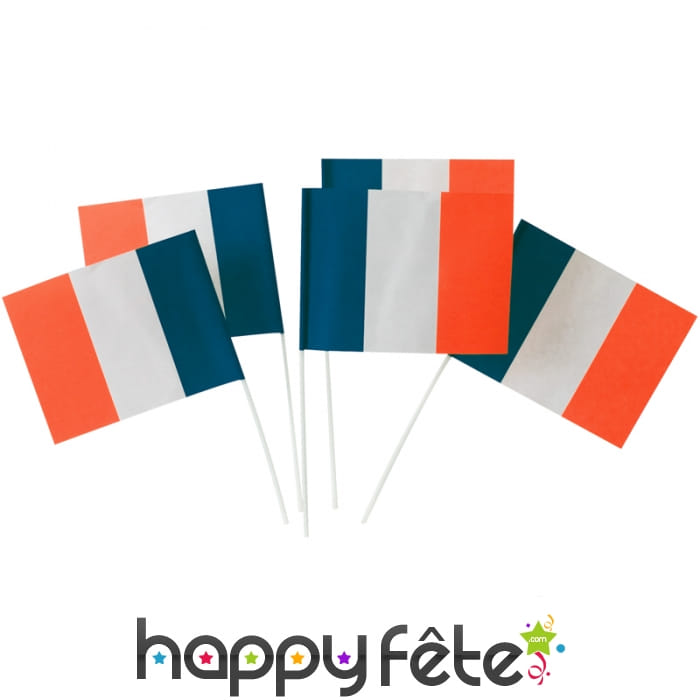 Les couleurs françaises sont mises en avant ! Honorez votre chère patrie en vous procurant ce lot de 25 drapeaux Français sur tige de 19 x 30cm. Ces petits drapeaux tricolores bleu, blanc et rouge sont destinés à la célébration de la fête nationale. Pendant un match, les supporters pourront brandir leurs drapeaux pour encourager leur équipe française.
