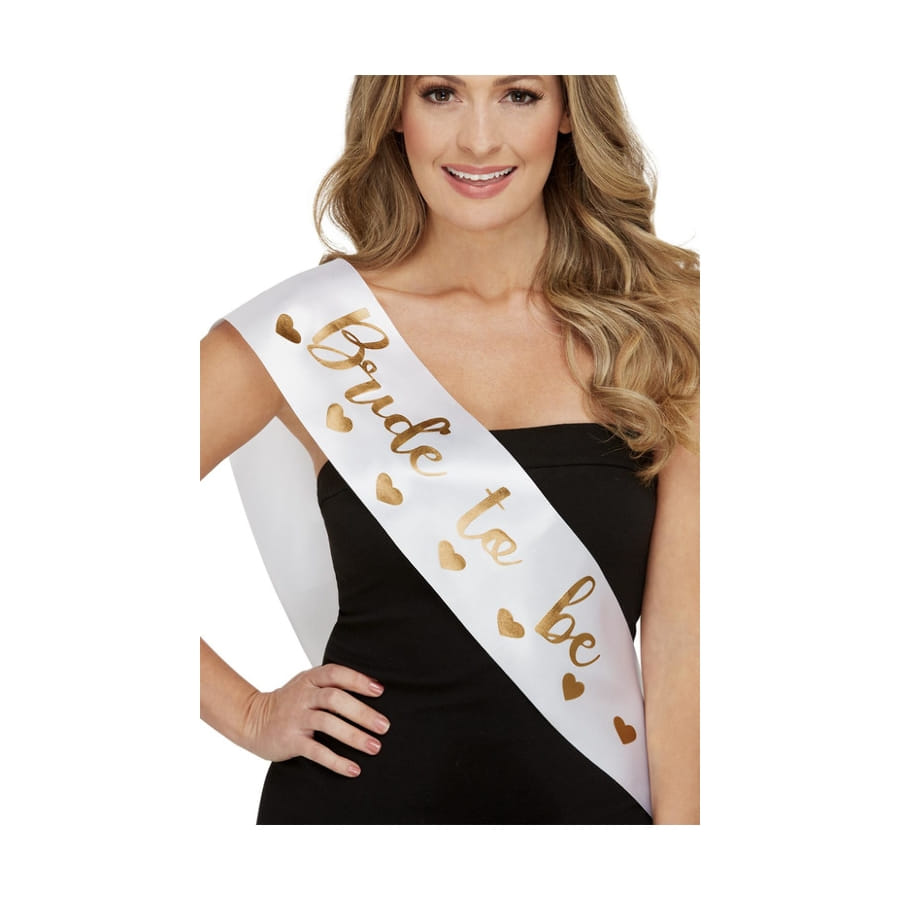 Cette Echarpe Bride to be blanche et dorée sera parfaite pour agrémenter votre costume d'enterrement de vie de jeune fille avec vos copines.