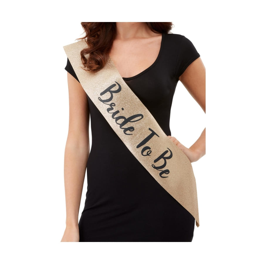 • Longue écharpe dorée à paillettes imprimée Bride To Be pour adulte.