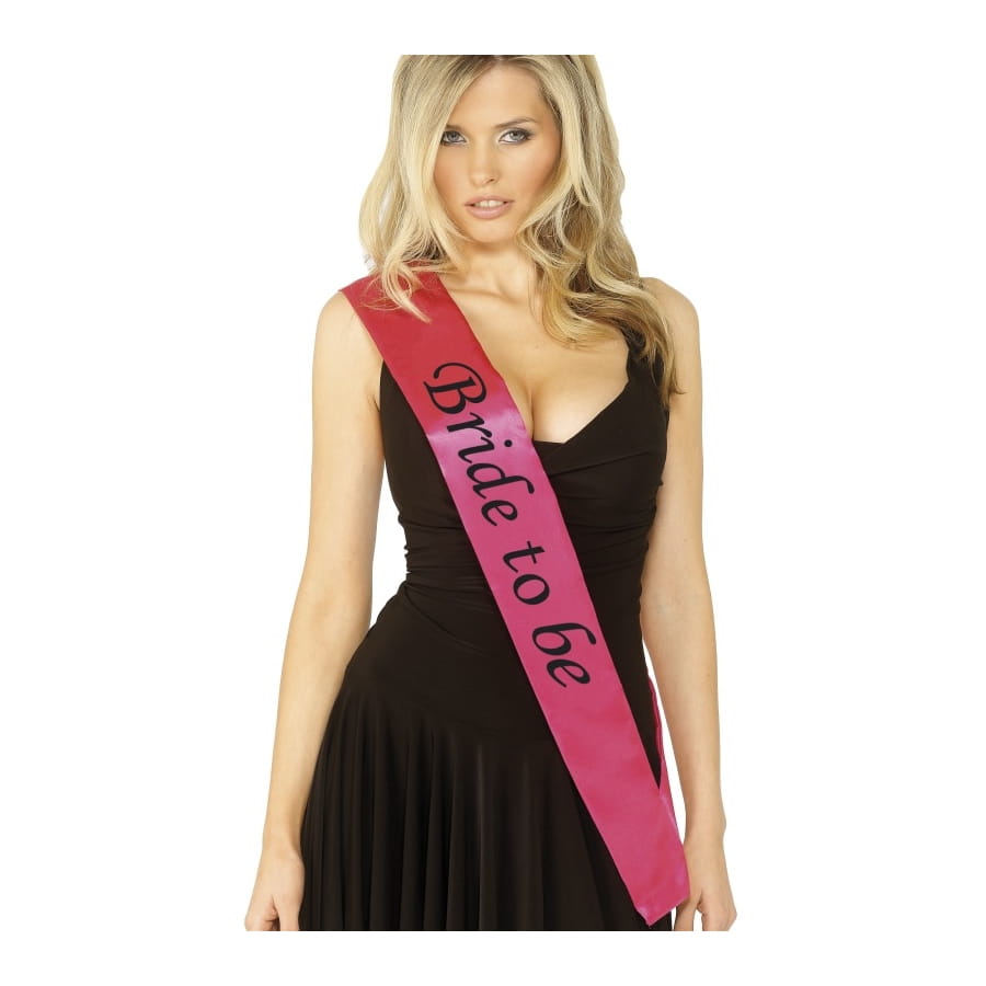 Echarpe de couleur rose imprimée de l'inscription "Bride to Be" en noir, pour femme. Enfilez cette écharpe et faites-vous traiter comme une reine lors d'un enterrement de vie de jeune fille ou de garçon!