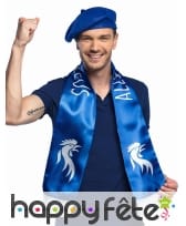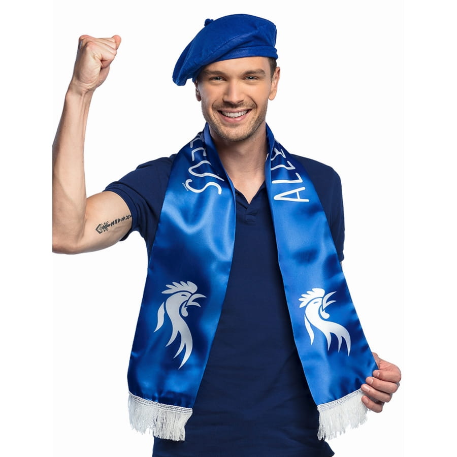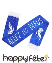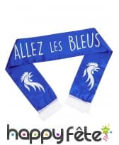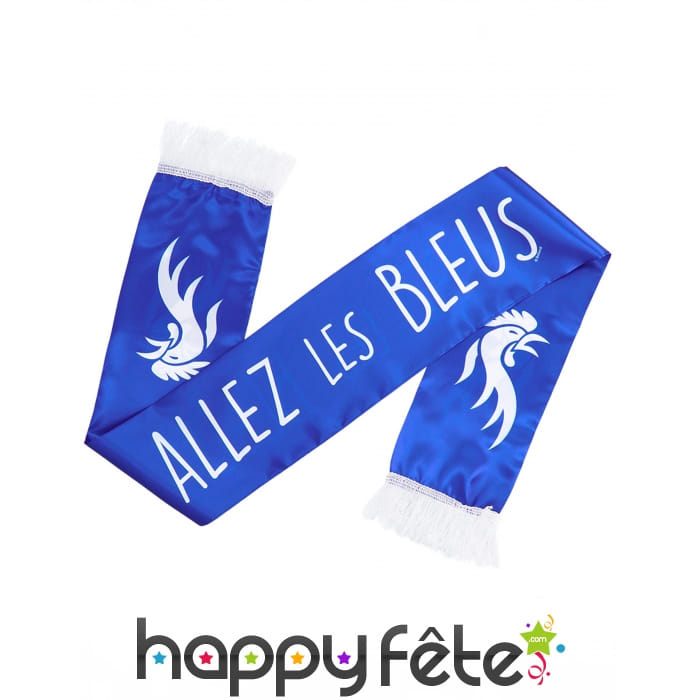 Cette écharpe de supporter arbore un magnifique bleu, complété par des franges blanches à chaque extrémité. Elle porte fièrement l'inscription "Allez les bleus", ainsi que le célèbre coq français, symbole de notre fierté nationale. Que ce soit pour la Coupe du Monde de football, l'Euro ou toute autre compétition sportive, cette écharpe vous permettra de montrer votre soutien de manière éclatante.