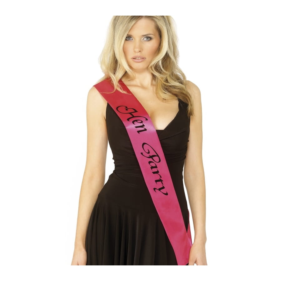 Echarpe "Hen Party" de couleur rose pour femme. Cet accessoire est imprimé du texte "Hen Party" en noir. Enfilez-la et célébrez sans retenue l'enterrement de vie de célibataire de votre amie!