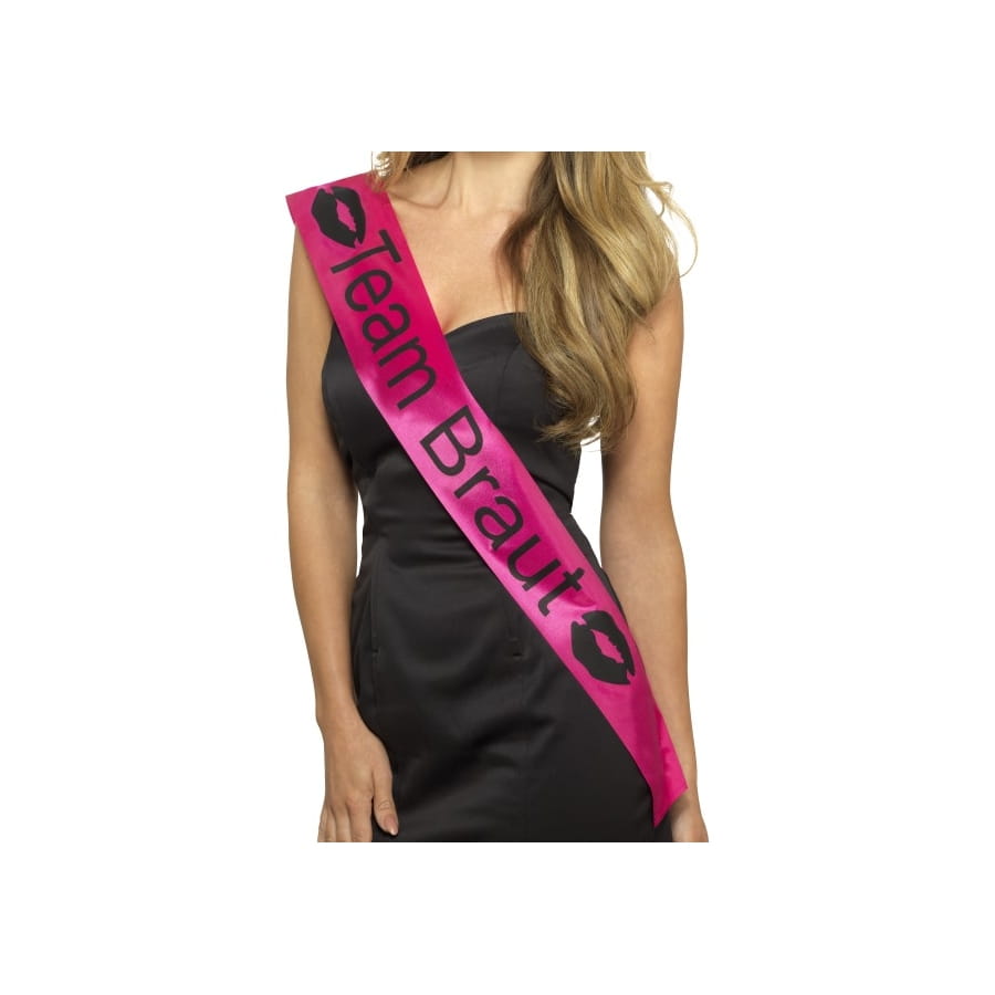Il n'est pas toujours facile de trouver des accessoires à l'occasion d'un enterrement de vie de jeune fille, mais cette écharpe Team Braut fera parfaitement l'affaire. Elle est d'une belle couleur rose fuchsia, et porte l'inscription "Team Braut" en noir, avec des lèvres d'un côté et de l'autre, en noir également. Cette écharpe pourra être portée en bandoulière par l'équipe qui fêtera l'enterrement de vie de mariée.