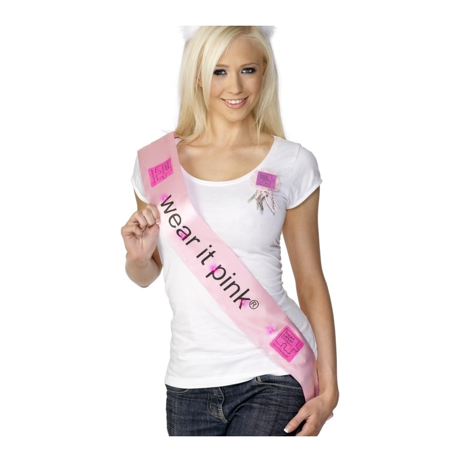 Echarpe "Wear It Pink" de couleur rose, pour femme. L'écharpe est imprimé d'un texte "wear it pink" en noir. Montrez votre support envers les recherches contre le cancer avec cet accessoire.