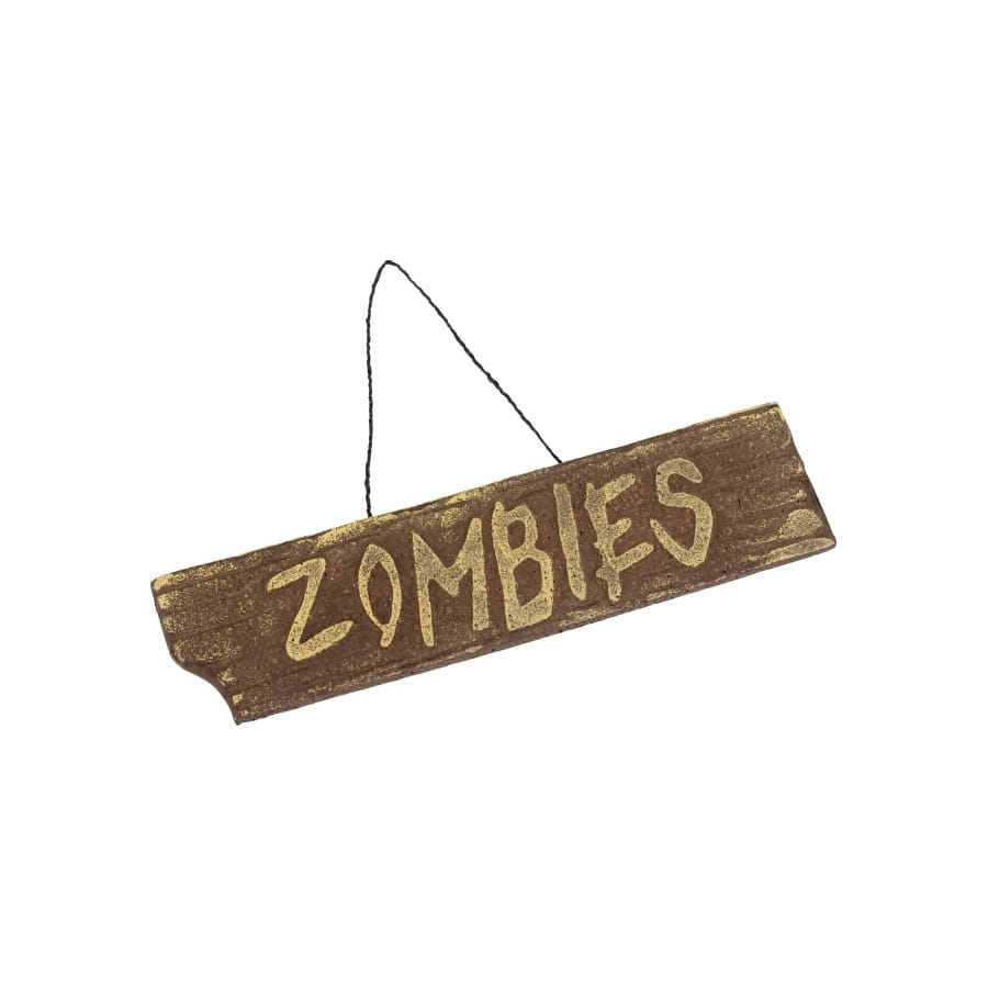 L'ecriteau zombies à accorcher pour Halloween fait partie du must have des décorations pour la fête des morts. Il reste disponible sur notre site. Cet article imite un bois usé marron, doté d'une petite corde à suspendre. Sur cette plaque est écrit le mot « Zombies » en beige. Cet ecriteau zombies à accorcher pour Halloween sert donc à prévenir de la présence de morts-vivants dans la zone où il sera placé.