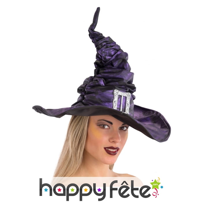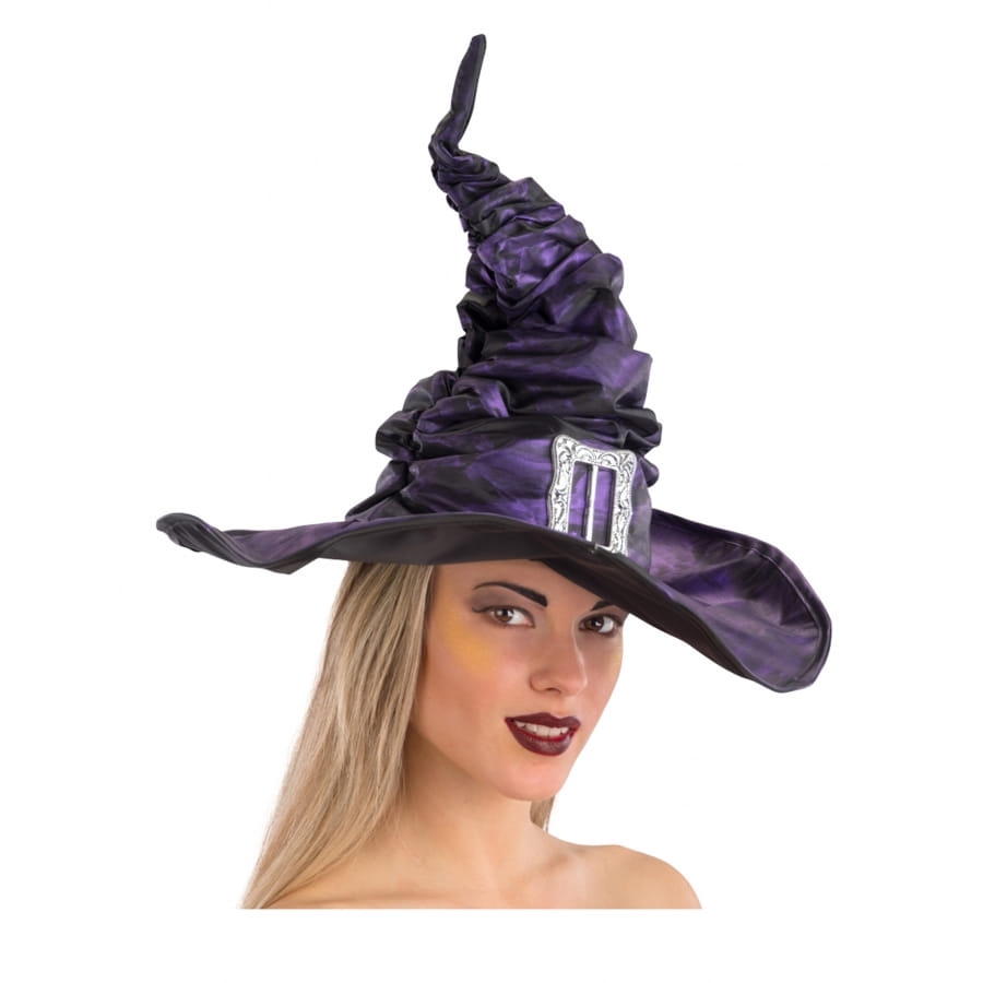 Sans doute la pièce maîtresse de votre costume maléfique, l'élégant chapeau de sorcière plissé fera sensation la nuit d'Halloween.