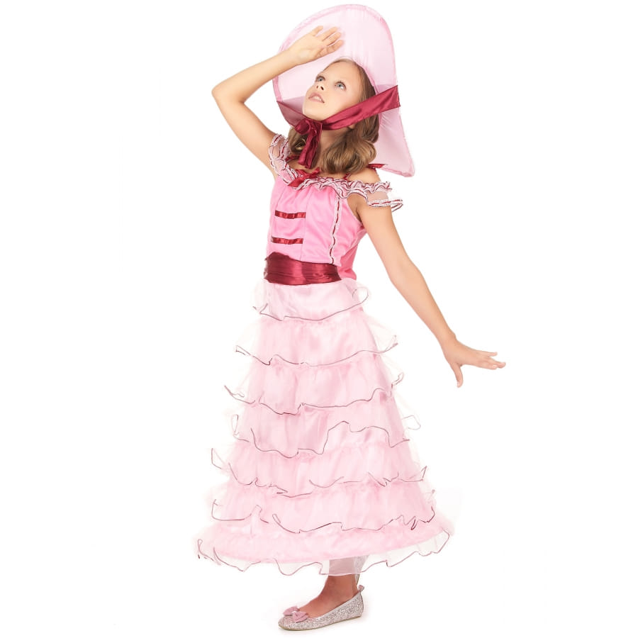 L'art de s'habiller comme une grande dame s'apprend ! Faisons un petit voyage dans le temps en remontant vers une époque lointaine, là où le chic et le raffinement étaient de premier ordre. Cette élégante robe rose ancienne pour petite fille fera gagner à votre charmante enfant le prix du plus beau déguisement d'époque. Il s'agit d'une longue robe de couleur rose agrémentée de magnifiques voiles en tulle qui lui offrent un aspect de légèreté. De jolis noeuds rouges effet satin ornent le haut de la robe. Le vêtement ne sera pas complet sans le grand chapeau rose à ruban rouge. Il souligne l'incomparable élégance de la tenue. Notez que l'article est disponible en différentes tailles, pour les fillettes de 3 à 10 ans.