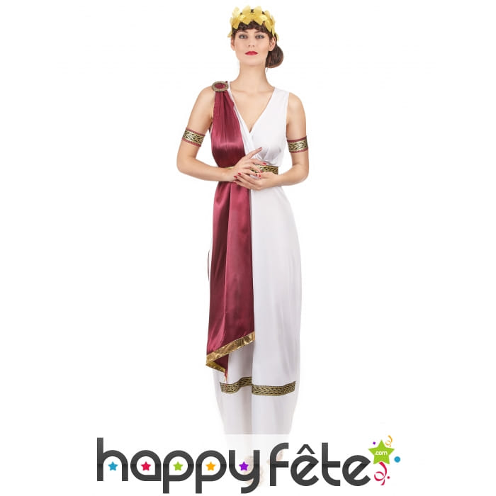Cette élégante tenue de femme grecque avec toge rouge est un déguisement classe et très bien présenté.