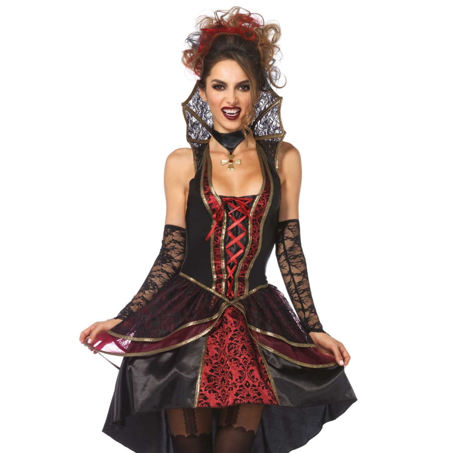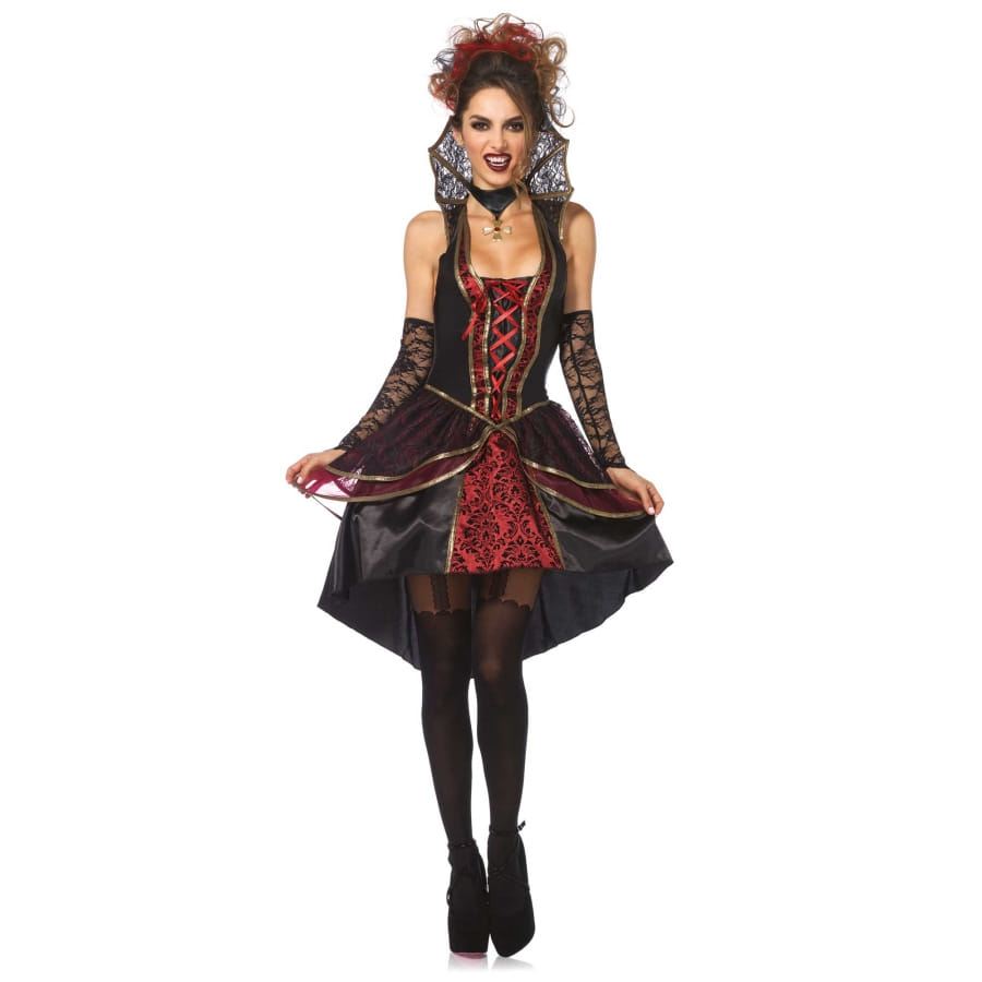 Effroyable et sexy cette Élégante tenue robe noire et rouge de vampire est faite pour vous.